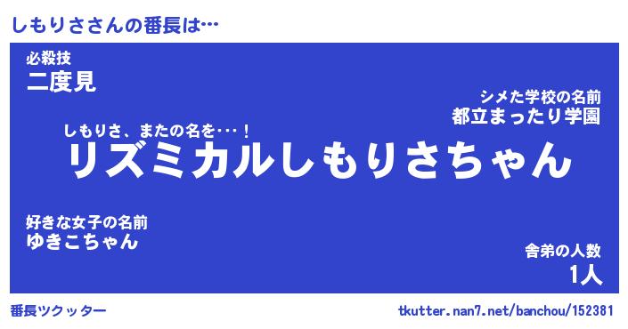 | 意味不明あだ名 | 『ペロリンしもりさ』『永久保存しもりさ』 |
