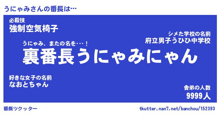 | ヒーロー風カッコイイあだ名 | 『スーパーウニャミ』『天弓騎士ウニ』 |