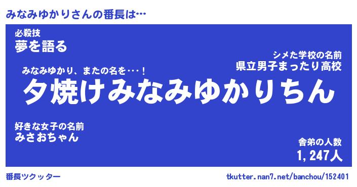 | ヒーロー風カッコイイあだ名 | 『スーパーミナミユカリ』『銀牙騎士ミナ』 |