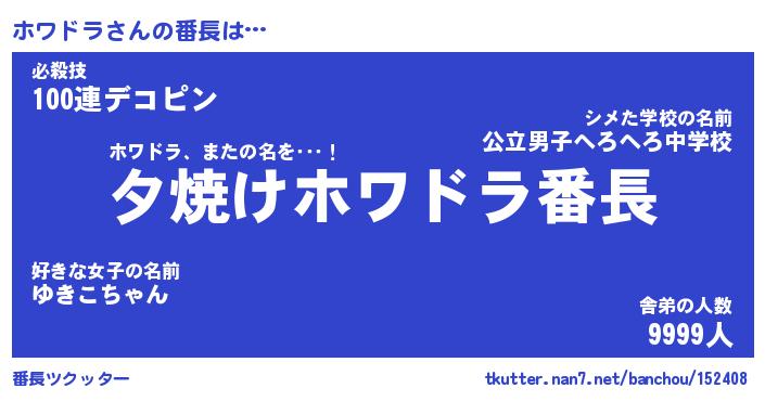| ヒーロー風カッコイイあだ名 | 『スーパーホワドラ』『暗黒騎士ホワ』 |