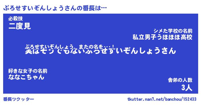 | 2回繰り返すあだ名 | 『ぷろぷろ』『ぷぷろろ』『なあなあ』 |