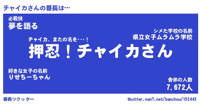 | ヒーロー風カッコイイあだ名 | 『スーパーチャイカ』『炎刃騎士チャ』 |