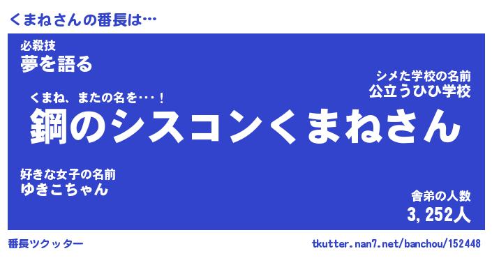 | 意味不明あだ名 | 『ペロリンくまね』『くまねフォーエバー』 |
