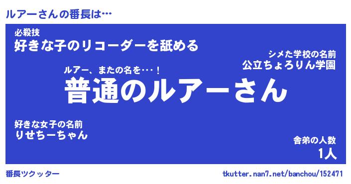 | ヘコむあだ名 | 『ルアにー』『なまこ酢』 |