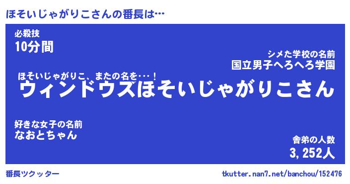 | ヒーロー風カッコイイあだ名 | 『スーパーホソイジャガリコ』 |