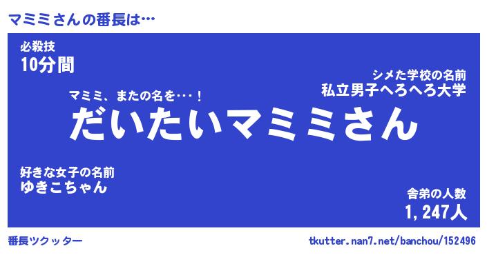 | 2回繰り返すあだ名 | 『マミマミ』『ママミミ』『なあなあ』 |