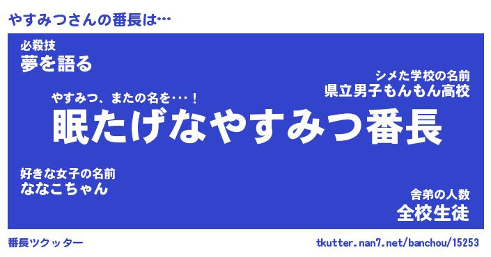 | 肩書あだ名 | 『やすみつ社長』『やすみつ総理大臣』 |