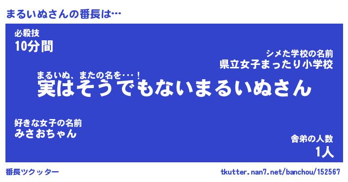 | 意味不明あだ名 | 『ペロリンまるいぬ』『永久保存まるいぬ』 |
