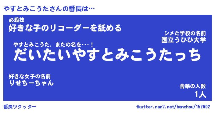 | 意味不明あだ名 | 『ペロリンやすとみこうた』 |