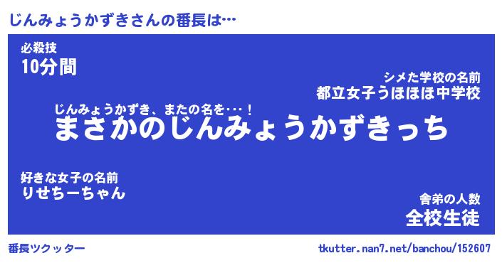 | 伝説のあだ名 | 『伝説のスナイパーじんみょうかずき』 |