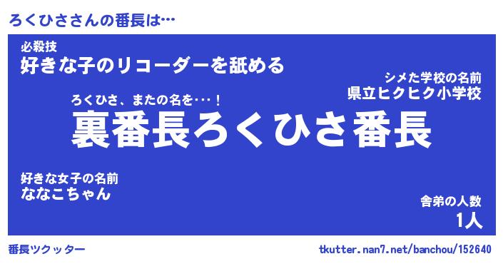 | 肩書あだ名 | 『ろくひさ御曹司』『ろくひさ国家主席』 |