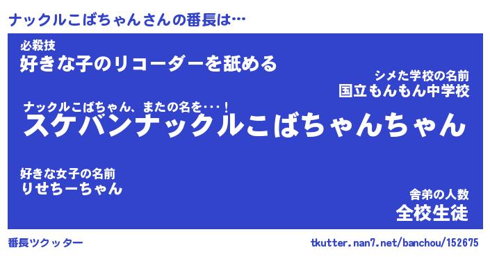 | 伝説のあだ名 | 『不死鳥の竜騎士ナックルこばちゃん』 |