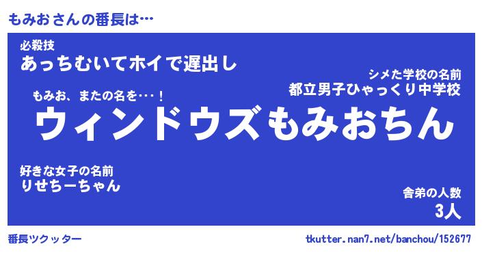 | ファンタジー風あだ名 | 『モミフェル』『エターナルモミオー』 |