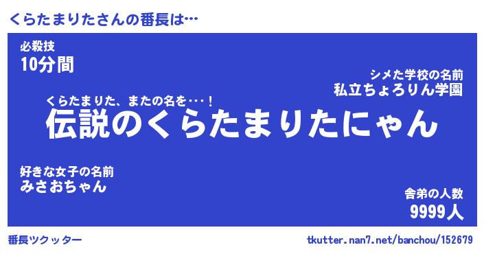 | 肩書あだ名 | 『くらたまりた店長』『くらたまりた団長』 |