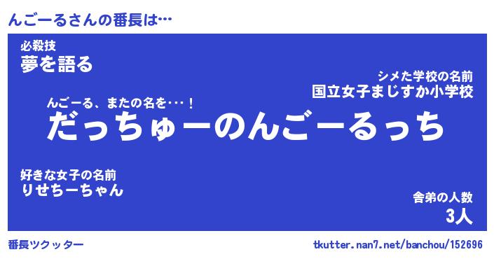 | 肩書あだ名 | 『んごーる御曹司』『んごーる国家主席』 |