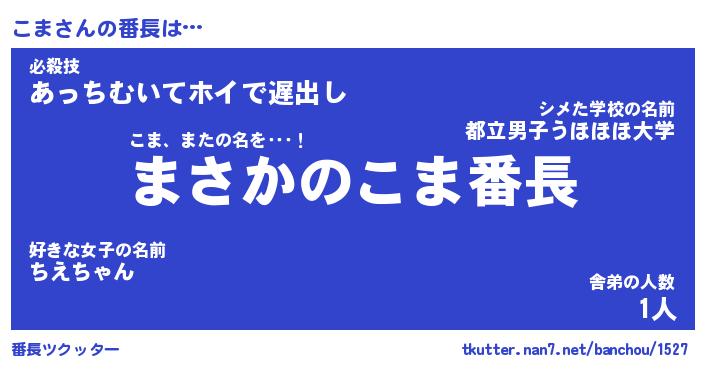| 伝説のあだ名 | 『伝説の竜騎士こま』『最強の忍者こま』 |