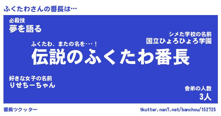 | ヒーロー風カッコイイあだ名 | 『スーパーフクタワ』『魔戒騎士フク』 |