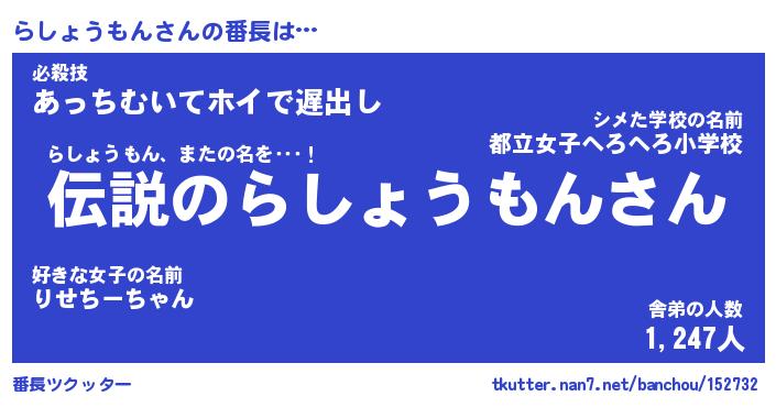 | 肩書あだ名 | 『らしょうもん御曹司』 |