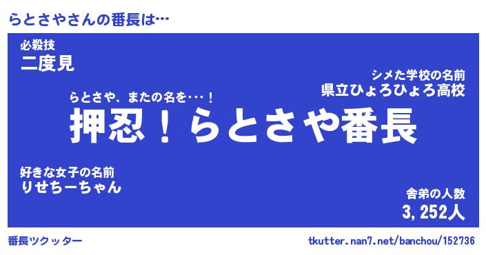 | ヘコむあだ名 | 『らとにー』『酢こんぶ』『らとっ子』 |