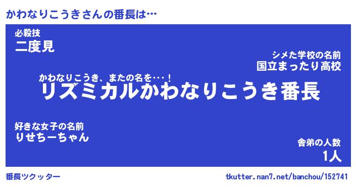 | 男性向けラノベタイトル風あだ名 | 『かわなりこうきの憂鬱』 |