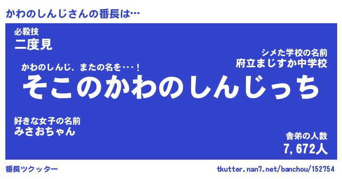 | ヒーロー風カッコイイあだ名 | 『スーパーカワノシンジ』『炎刃騎士カワ』 |