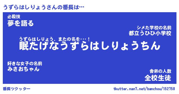 | 肩書あだ名 | 『うずらはしりょう店長』 |