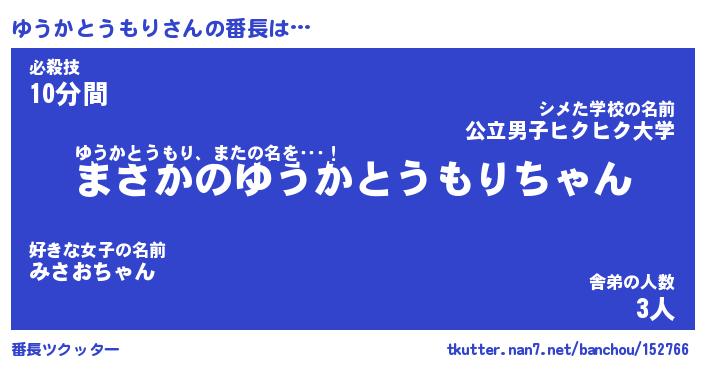 | 胡散臭い通販商品みたいなあだ名 | 『必ず成功する霊験あらたかなお札…その名も「ゆうかとうもり」』 |