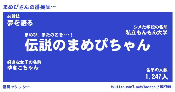 | ファンタジー風あだ名 | 『マメフェル』『エターナルマメピー』 |