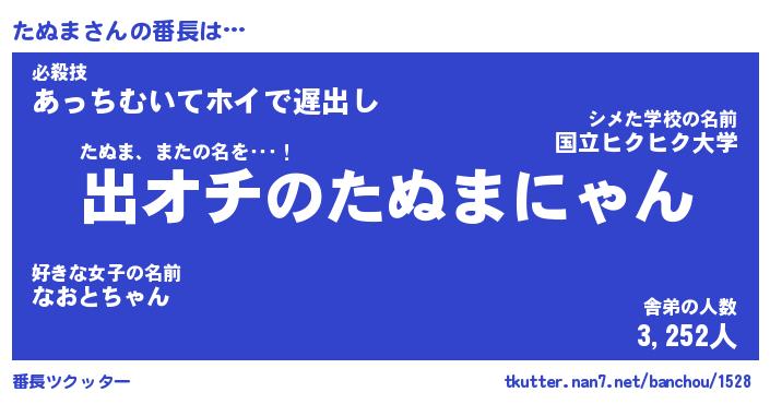 | ファンタジー風あだ名 | 『タヌフェル』『エターナルタヌマー』 |