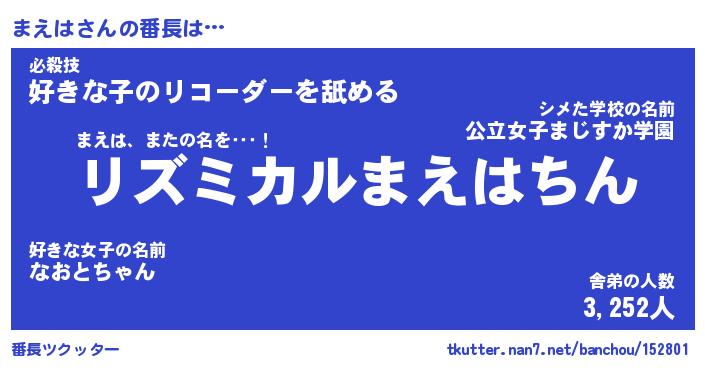 | ヒーロー風カッコイイあだ名 | 『スーパーマエハ』『ウルトラまえはマン』 |