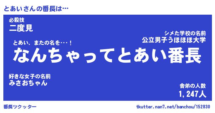 | ヒーロー風カッコイイあだ名 | 『スーパートアイ』『ウルトラとあいマン』 |