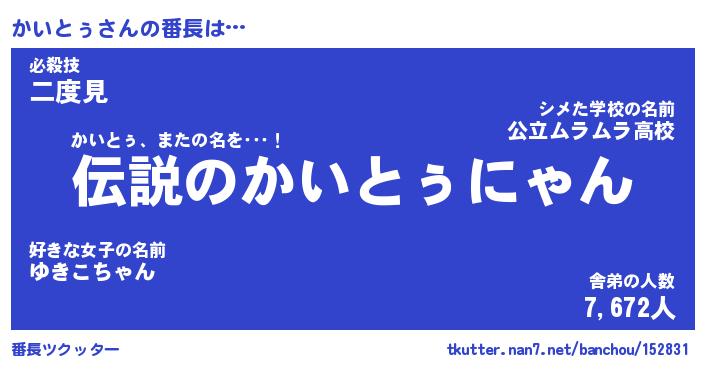 | 意味不明あだ名 | 『ペロリンかいとぅ』『永久保存かいとぅ』 |