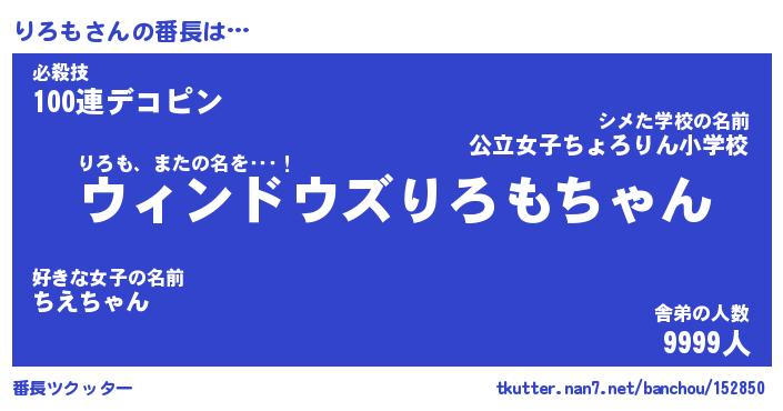 | ヘコむあだ名 | 『りろもー』『つくし』『りろぷりん』 |