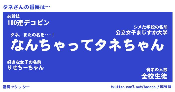 | ファンタジー風あだ名 | 『タネフェル』『エターナルタネー』 |