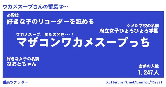 | ヒーロー風カッコイイあだ名 | 『スーパーワカメスープ』『銀牙騎士ワカ』 |