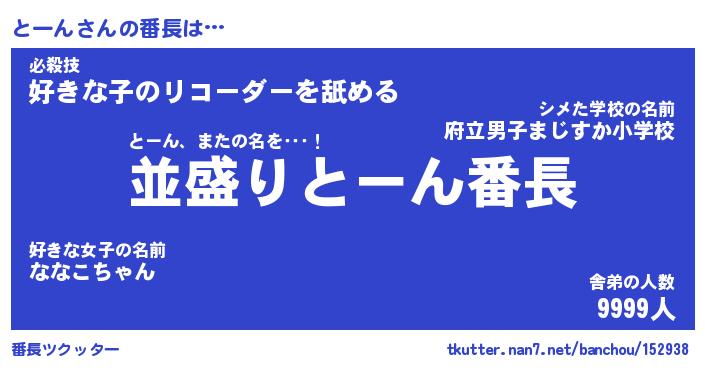 | 肩書あだ名 | 『とーん店長』『とーん国家主席』 |