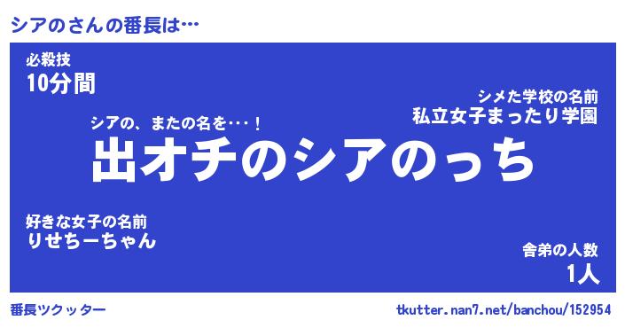 | 2回繰り返すあだ名 | 『シアシア』『シシアア』『あんあん』 |