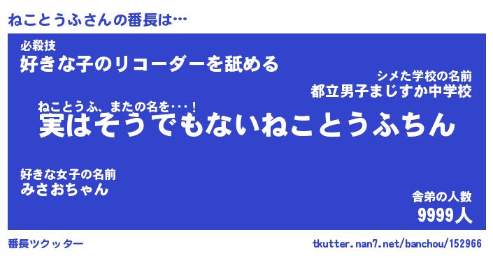 | ファンタジー風あだ名 | 『ネコフェル』『エターナルネコトウフー』 |