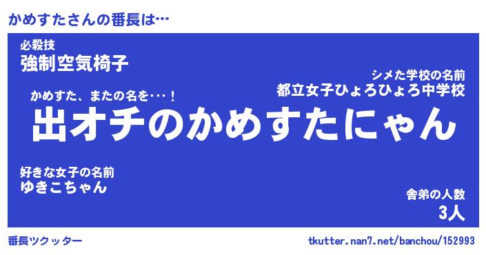 | 2回繰り返すあだ名 | 『かめかめ』『かかめめ』『おらおら』 |