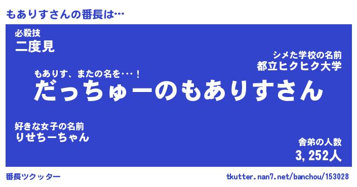 | 肩書あだ名 | 『もありす社長令嬢』『もありす総理大臣』 |