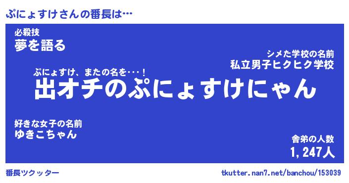 | 男性向けラノベタイトル風あだ名 | 『ぷにょすけの憂鬱』 |