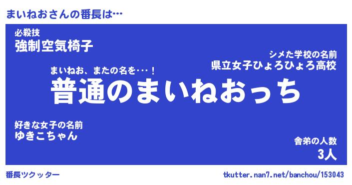 | 意味不明あだ名 | 『ペロリンまいねお』『永久保存まいねお』 |