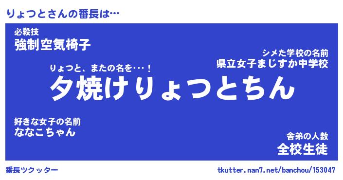 | 肩書あだ名 | 『りょつと店長』『りょつと総理大臣』 |