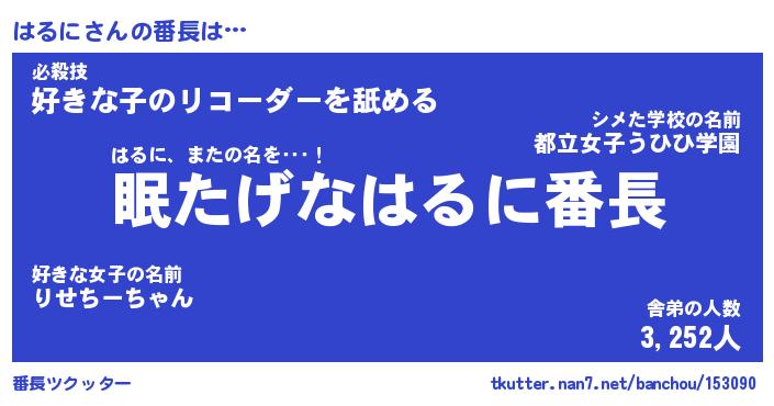 | 2回繰り返すあだ名 | 『はるはる』『ははるる』『ぬめぬめ』 |