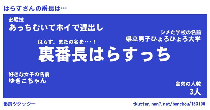 | 意味不明あだ名 | 『ペロリンはらす』『はらすフォーエバー』 |