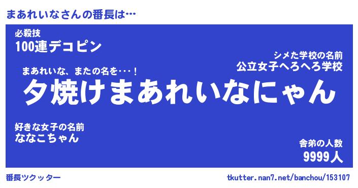 | 伝説のあだ名 | 『封印されしスナイパーまあれいな』 |