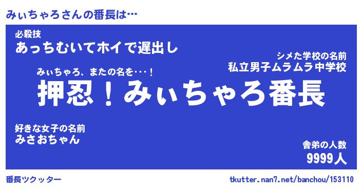 | ヒーロー風カッコイイあだ名 | 『スーパーミィチャロ』『天弓騎士ミィ』 |