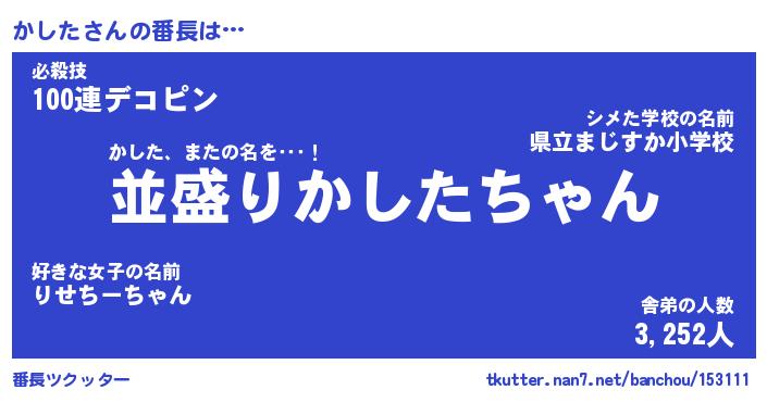 | ピコ太郎風あだ名 | 『カコ二郎』『ピカ一郎』『カシ八郎』 |