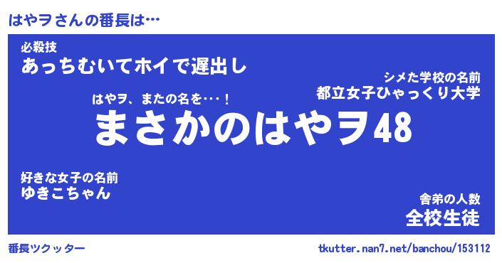 | 肩書あだ名 | 『はやヲCEO』『はやヲ総理大臣』 |