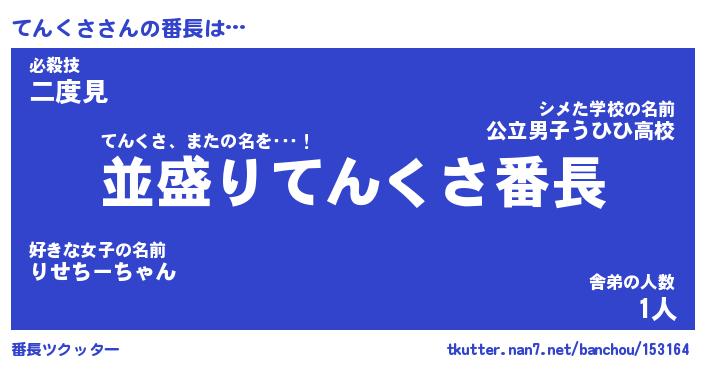 | 意味不明あだ名 | 『ペロリンてんくさ』『永久保存てんくさ』 |